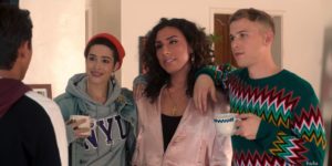Bram and Victor return to the apartment, the rest getting ready for the show later. Victor asks Justin why gay people like to wear drag, and if it’s something about becoming a character. Justin shows Victor a photo of him from three years ago, dressed in bland clothing and looking immensely unhappy. He tells Victor dressing like that was a dark time in his life and that was being a character. Now, he’s finally able to be himself. Victor decides to open up. He admits he’s worried about how his parents will react if he comes out. Justin pulls him into a hug and the rest join in.