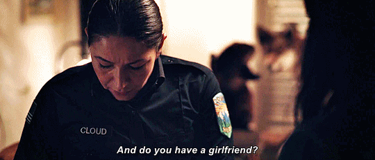 We then meet Babe (Tamara Podemski), who along with her partner is called to the scene of the crime after a tip comes in. The tip was made by Laurel, who noticed a dead body on her friend Daniel’s property when she stopped by to drop off mac n’ cheese. Babe is an adorable person with no experience with murder investigations, which becomes clear when she questions Laurel about what she saw. She sits down with Laurel and has to take the shrink wrap off her police notebook before asking her questions. But another obstacle to solving the case becomes clear quickly: Babe is smitten with Laurel. When Laurel helps Babe take off her police vest, Babe blushes uncontrollably and stammers. Babe asks how Laurel knows Daniel, and in another fabulously funny line Laurel replies, “he brings me roadkill, and I bring him mac n’ cheese.”