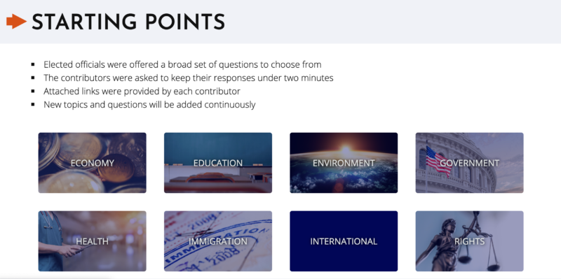 The site features three different areas collected from senators and House representatives to governors and mayors: Starting Points, Daily Points, and Counterpoints.