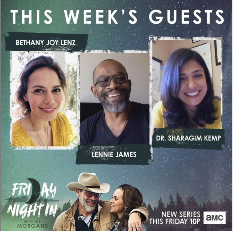 More information is to be announced tonight’s episode of Friday Night in with the Morgans featuring Bethany Joy Lenz, Lennie James (The Walking Dead, Fear the Walking Dead), and Dr. Sharagim Kemp. Catch the episode tonight at 10/9 CT on AMC and stay tuned for more updates!