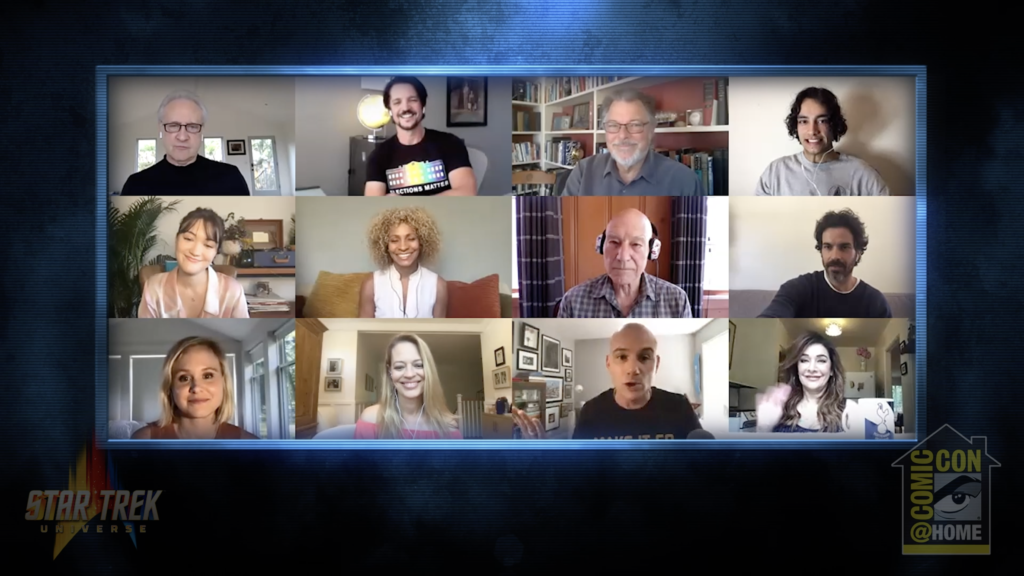 The panel included: Patrick Stewart (Jean-Luc Picard), Alison Pill (Dr. Agnes Jurati), Isa Briones (Dahj/Soji), Evan Evagora (Elnor), Michelle Hurd (Raffi Musiker), and Santiago Cabrera (Cristobal Rios) along with special guest stars Brent Spiner (Data/Dr. Soong), Jonathan Del Arco (Hugh), Jonathan Frakes (William Riker), Jeri Ryan (Seven of Nine), and Marina Sirtis (Deanna Troi).