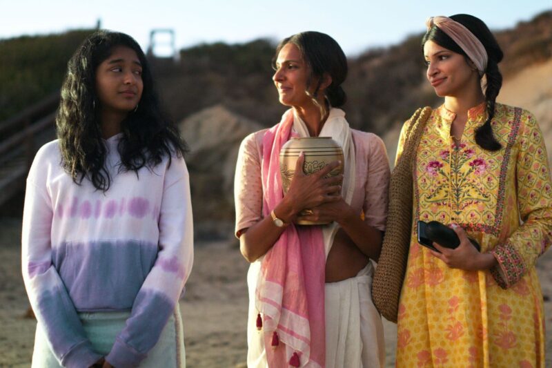 In one of the final scenes of the season (and undoubtedly the most emotional one of all), Nalini, Kamala, and Devi finally put Mohan to rest on his birthday. Earlier in the episode, Devi and Nalini were fighting, and it was uncertain whether Devi would make it to the beach where Nalini and Kamala go to spread Mohan’s ashes. Devi makes it just in time, with the help of John McEnroe (who was only a voiceover up until this episode). She and Nalini have an emotional reunion. Soon after, Nalini is ready to spread the ashes, and after reciting a small prayer, she prompts Kamala to play a song. And that song? “Beautiful Day” by U2. (Be right back, just need to have another cry over this.)