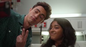 Devi decides to go to a party hosted by one of her classmates, as a way to continue trying to get close to Paxton Hall-Yoshida. While she’s there, she notices Paxton getting cozy with someone else and decides to divert her energy towards drinking. Shortly after, she stumbles outside where she’s met with a coyote she thinks is really her father. It’s not, and when Devi reaches out to talk to it, she’s attacked, while everyone at the party is watching. Paxton takes her to the hospital, but instead of dropping her off and leaving, he stays with her. He tells her everyone thinks she’s dead (a bit dramatic), and the two take a selfie together to prove she isn’t, which Paxton shares on social media, much to the surprise and delight of Devi. He only leaves when Nalini arrives at the hospital.