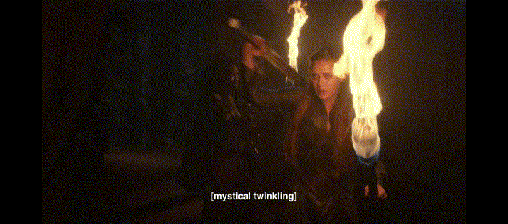 Back in the temple, Kaze and Nimue talk, and she mentions that she is Merlinās daughter. Kaze tells her to keep that information to herself because of how the Fey perceives him. Nimue says that she can feel Cailleach studying her looking for her weakness. After hearing a noise, Kaze goes to look for Morgana telling Nimue to stay in the chambers where it is safest. While waiting for them to return, the fire in the room goes out. As she tries to relight it, she gets a vision to Arthur and the others as they are in the burning windmill. Arthur looks up as if they can feel each other. When the three women are reunited, they ride off to where Arthur and Gawain are to save the day. You go, girls!