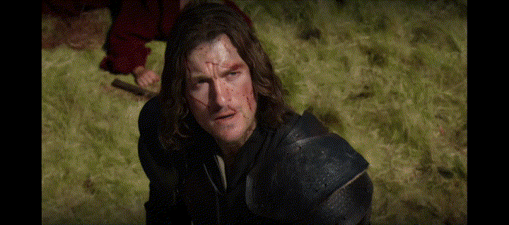 Picking right where it left off, we see The Weeping Monk and Arthur fighting in a well-choreographed scene. Seriously, I could have spent a lot longer watching then battle it out. When Arthur knocks his opponent down, he takes off running in the direction Gawain, and the others went. There is a hoard of Red Paladins shooting arrow after arrow at them, keeping them contained in the windmill. They are not only surrounded but outnumbered. Gawain and Arthur try to think of a plan to get everyone out, all of a sudden squirrel shows up to help after Iris slyly convinced him to go. Everything Iris shows up on the screen, you know something is about to happen; that girl is trouble. Before Gawain has enough time to chastise him, The Weeping Monk begins to torture Bergerum for the surrender of the Green Knight, aka Gawain. Arthur tries to convince him not to, but Gawain wants to save his friend. As Gawain stands in the open door about to walk out, Arthur takes and shoots an arrow, killing Bergerum and telling Gawain to honor him by saving lives. The next arrows the Red Paladins shoot at them are on fire.
