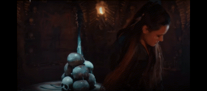 Morgana heads down to retrieve the sword. When she finds it, she gets to hold it for the first time. Hearing a weird noise, Morgana goes towards it as one would. Morgana drops the sword in shock at who is in front of her. It’s Celia, the woman she loves. Celia tells her that she died in the convent fire and is there in front of her because of Cailleach and that Morgana has a great destiny and will be more powerful than Nimue. Celia tells Morgana that she must find the ādead man who stands outside the bell tower.ā Then she puts a finger to Morganaās lips, where a small spider crawls in. Seriously, why is it always spiders?