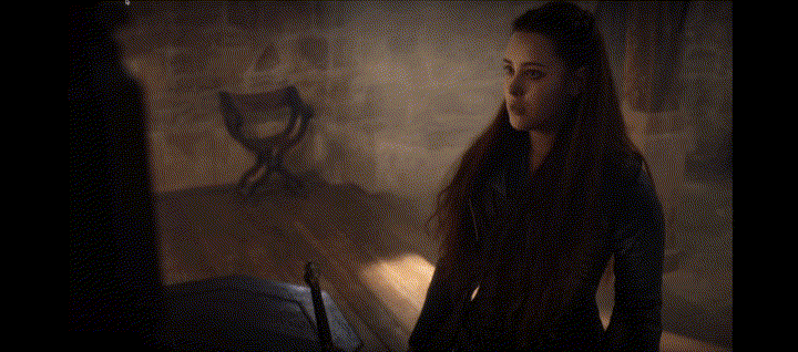 In the castle, Arthur and his uncle, Lord Ecker, argue. He does say that he will speak with the Fey Queen. After a heated conversation, Lord Ecker reluctantly does give up his throne, and Nimue takes the town. As he leaves the room, Ecker says that she has doomed them all. Putting the sword beside the throne, Nimue slowly sits in it. With it just being Arthur and Nimue, he brings up what using the sword’s magic is doing to her. Nimue gets her guard up, saying that she doesn’t want another lecture saying that he is only mad because she is the one who has that sword.
