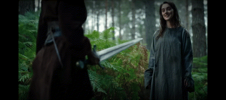 Morgana is in the woods with the sword far enough that she sits to rest and looks at the sword. Celia appears beside her again, telling her to bring the sword to Cailleach’s Temple because Nimue’s journey is done. Morgana says she is wrong and that she has to go to help Nimue. Celia watches her leave with a sinister smile. Maybe this was part of the plan after all?