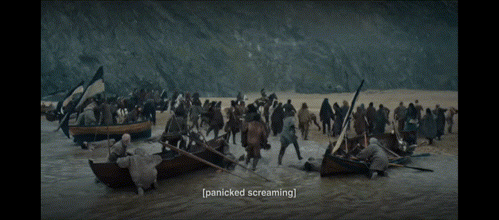 As Worth and the Tusks are getting ready to leave to go to the ships, Arthur and Nimue say their reluctant goodbyes. They reminisce about the first day they met and kiss goodbye. After finally being reunited, Nimue must also say goodbye to Pym, who is going with them. Pym makes the joke that she never thought she would be the one getting on a ship and leaving. This really sets the overtone for Nimue’s choice and of what is to come, like, this basically is the last time Nimue sees Arthur and Pym.