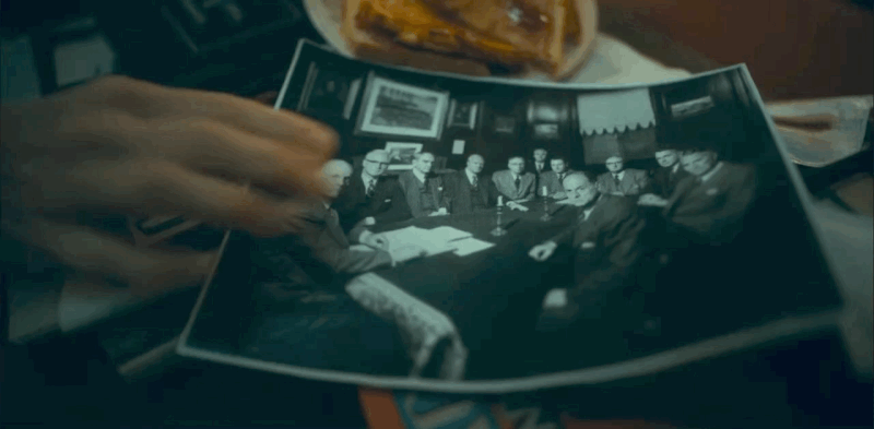 The Majestic 12, a secret committee of scientists, military, and deep state — they’re a shadow government. Kennedy has been the first president trying to expose them. Elliott pulls out a photo of the group, one is missing, still unidentified. Diego and Five share a knowing look, the twelfth member has to be their father.