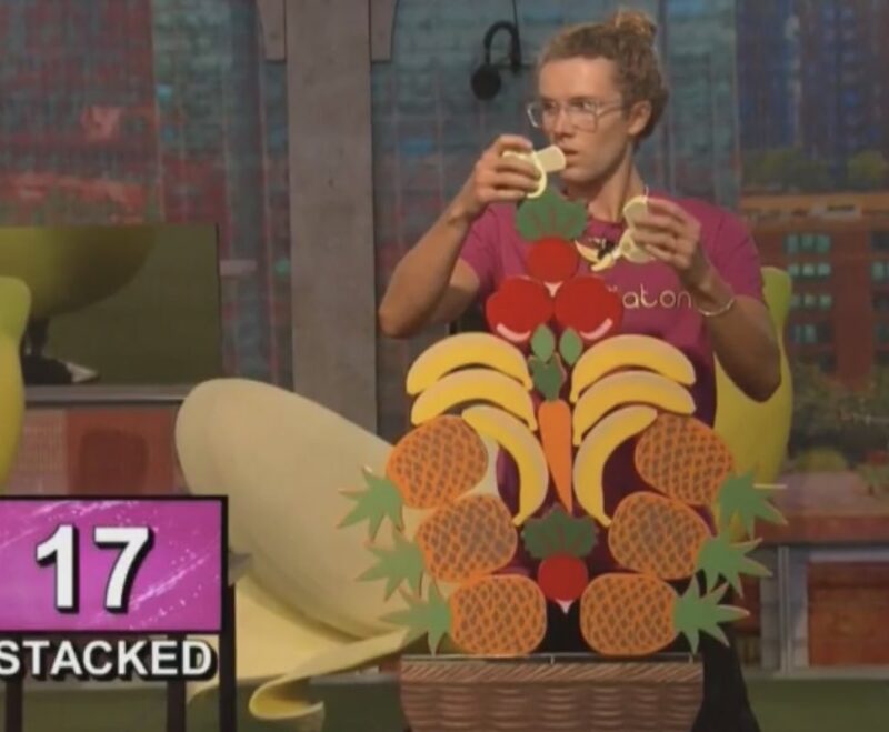 After the break, it’s the first Veto competition! This competition is called the “Peelaton.” You have to rock the large “Peelaton” banana to gain more time. The goal is to stack the most produce in the basket in the least amount of time.