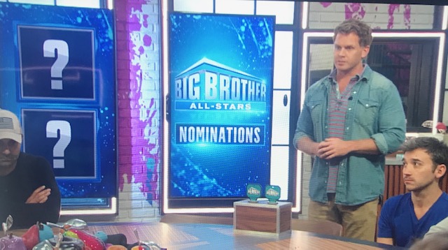 We return from the last commercial break for the nomination ceremony. Everyone gathers around the table and prepares for the impact. The first nomination is Nicole A. The second nomination is for David. He tells Nicole she was nominated because she did not participate in the Safety Suite. Memphis tells David he needs to prove himself. David is determined to win that veto to prove to Memphis he is not safe.