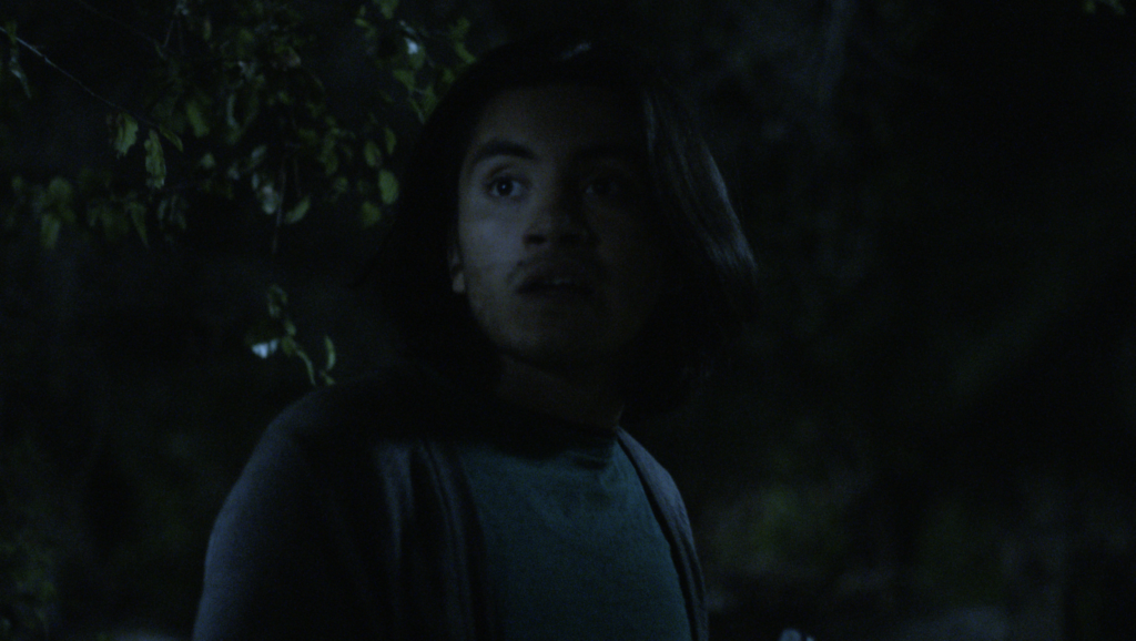 Jesse (José Julián) is getting waiting for his friends to come to pick him up for a camping weekend getaway while his grandmother is lighting candles and praying over images and newspaper articles about a woman and man that died in a murder-suicide. She is reserved about her grandson going on what we find out is the ninth anniversary of his parents’ death. Hmm, that kid in the picture looks familiar.