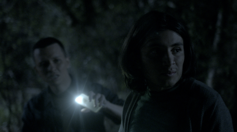Jesse (José Julián) is getting waiting for his friends to come to pick him up for a camping weekend getaway while his grandmother is lighting candles and praying over images and newspaper articles about a woman and man that died in a murder-suicide. She is reserved about her grandson going on what we find out is the ninth anniversary of his parents’ death. Hmm, that kid in the picture looks familiar.