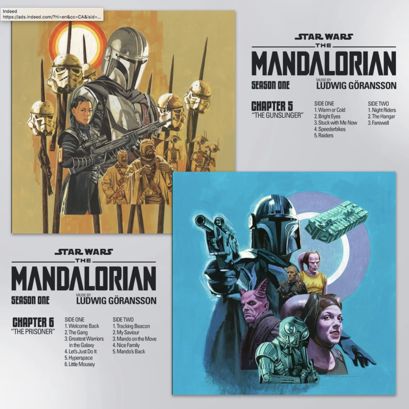 This box set is a limited edition (3,500 units worldwide), one time pressing on 180 gram vinyl. Each LP features original artwork by Paul Mann, and the box set itself comes in a deluxe heavy-duty slipcase adorned with Din Djarin’s mudhorn signet.