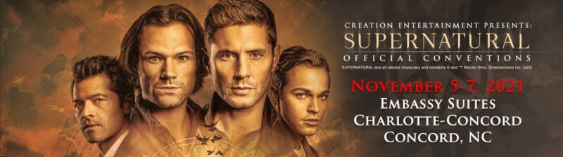 Tickets are now back on sale for Creation Entertainment’s Supernatural Charlotte convention! The event was previously rescheduled for November 5-7, 2021 at Embassy Suites Charlotte-Concord. All previously announced guests are confirmed for the new dates including Jensen Ackles, Jared Padalecki, Misha Collins, Alexander Calvert, and more.
