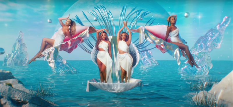 There may be a closed sign on Ursula’s seabed lair, but Little Mix has hatched up their own secret potion to relight our mermaid fantasies. It starts with Jesy Nelson’s siren call, the same bubbles drifting around her that previously spelled out the title of their current single “Holiday.” She’s not alone, though. As the music video progresses, we can scope out a spa in a better oceanic neighborhood before inevitably landing on the three other girls lavished in goddess attire. This all leads to a heavily inspired Botticelli shot, Perrie Edwards and Leigh-Anne floating mid-air while Jade Thirlwall and Nelson remain center stage on their clam below.