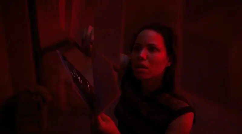 Back at the ritual, which seems to work at first, the ghosts of the house make their presence much more known. The ghost of Hiram possesses the woman, and then he possesses Tic, yelling for them to leave the house. Letitia continues with the ritual, calling on the spirits of the eight people Hiram killed to cast him out, all while “Satan, We’re Going to Tear Your Kingdom Down” by Shirley Caesar plays, bolstering the intensity of the scene. Hiram is finally cast out.