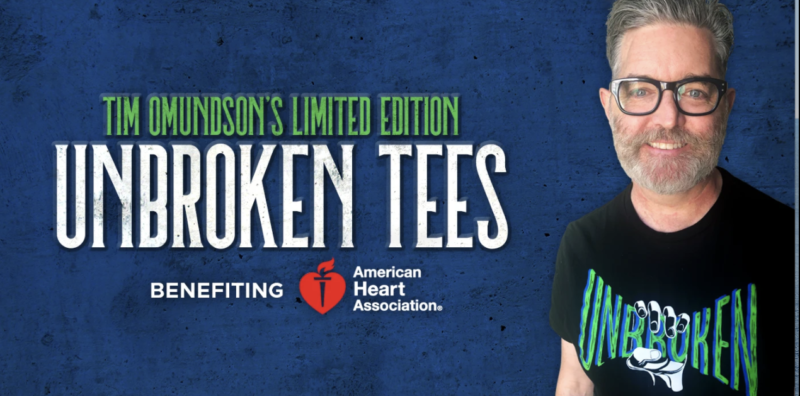 The “Unbroken” t-shirts celebrate resilience. As many people know, Omundson had a stroke back in 2017 and has been a vocal advocate for stroke awareness ever since. The “Unbroken” shirts were designed by Omundson’s 18-year-old daughter, Lily.