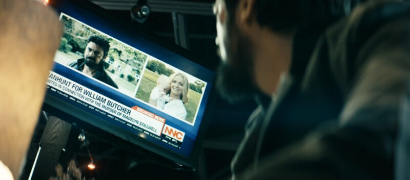 The episode opens with Butcher in the hideout, looking down at a piece of paper with various notes written on it. Then, we flashback to him waking up in the parking lot of a Tony Cicero’s restaurant, seemingly having been left there by Homelander after the impromptu visit to see his suddenly-not-dead wife. He stumbles inside of the restaurant, grabs a piece of paper and a crayon, and writes down everything he can remember about Becca’s house. Meanwhile, a news alert plays on the television in the lobby, informing the public that he — William Butcher — is wanted for the murder of Madelyn Stillwell. Oops. He looks at the hostess and takes off.