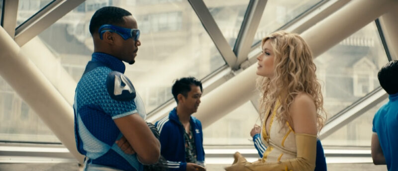 A-Train’s “welcome back” party is taking place elsewhere in the building, and Starlight confronts him to feel him out and see if he’s told anyone that she helped Hughie escape at the end of last season. Unfortunately for her, he leaves without answering, happy to let her squirm.