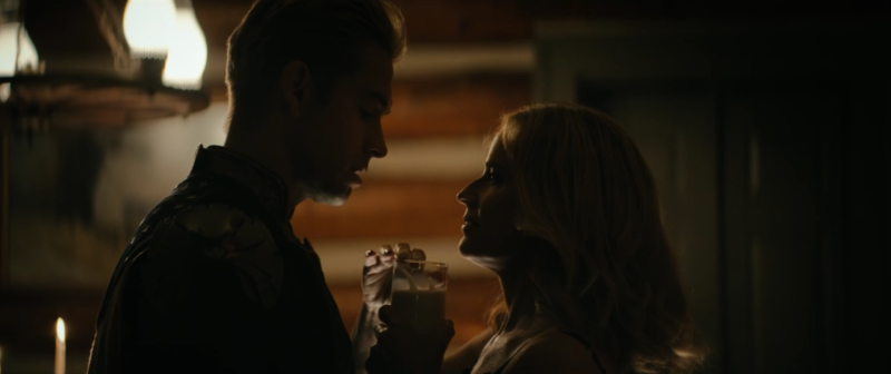 In the conference room at Vought, Homelander angrily sits and watches a news report about Stormfront. He takes off, leaving the tower and arriving at a cabin. In an absolutely wild turn of events, out walks … MADELYN STILLWELL? She’s wearing lingerie and carrying a glass of milk, which she proceeds to give him (what’s with this man and milk, honestly?) before he kisses her.