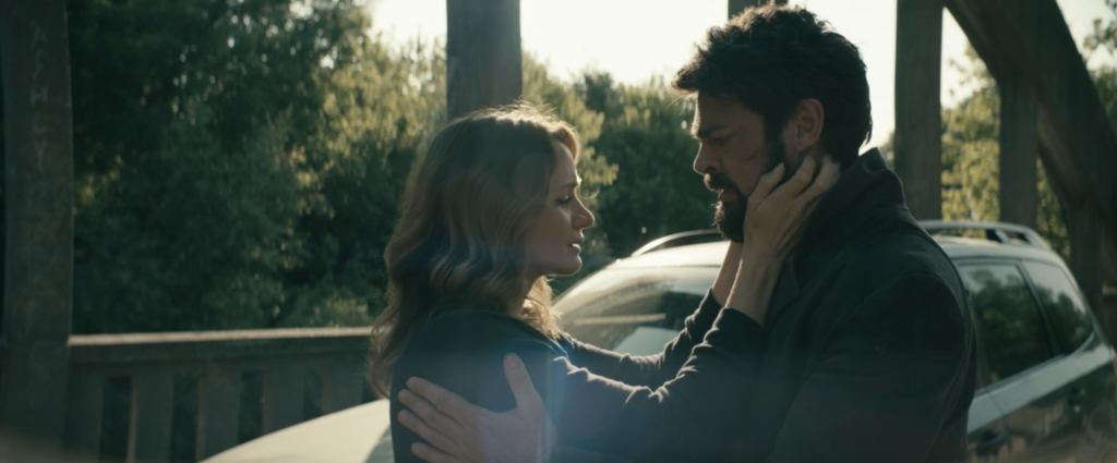 Becca meets back up with Butcher, who’s confused because she didn’t bring Ryan with her for their great escape. She tells him that she’s not coming, because she knows that he doesn’t want Ryan to come with them, he will find a way to get rid of him. Butcher, caught, admits that Vought will never let the child go, but the two of them have a chance. Becca remains steadfast, knowing her son will grow up to be a repeat of Homelander if he’s raised without a mother. Butcher puts his foot in his mouth as he calls the boy a Supe freak. Whoops. Upset, Becca exclaims that after Homelander raped her and she found out she was pregnant, she went to Vought because she was terrified knowing that Butcher would seek revenge if she told him. She hugs and kisses him goodbye before driving off.