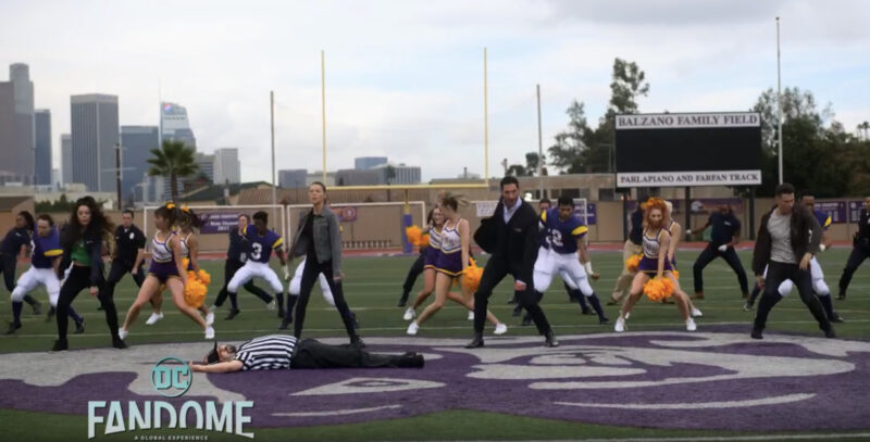 The Episodes director, Sherwin Shilati, and showrunners/executive producers Joe Henderson and Ildy Modrovich, joined DC FanDome in a panel where they shared a snippet of the cast singing Queen’s “Another One Bites the Dust,” as they perform on a football field complete with a chorus of football players and cheerleaders dancing with them. The three also discuss making the episode, and all the work went into it. “You’ve got to have the story-based reason that everyone breaks into song,” said Henderson.