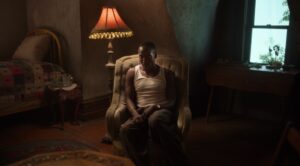 The episode opens with a white woman (Jamie Neumann) waking up, and we soon learn the woman is Ruby. Scared and disoriented, she stumbles into town among the Black community, where bystanders gawk at her. Still struggling to understand what’s going on, Ruby bumps into a young Black boy, and almost immediately after, the cops show up. Ruby reacts as though she were still presenting as a Black woman, but the cops instead prepare to harm the boy, thinking he attacked Ruby. She stops them and they bring her home. Only, home is William’s. On the ride back, the cops talk to her, but she isn’t listening. She’s focused on something bizarre happening to her body. When she arrives at William’s, he puts her on a plastic tarp on the floor, unphased by what’s happening to her. Instead, he moves the transformation along, removing the white woman’s skin from Ruby.