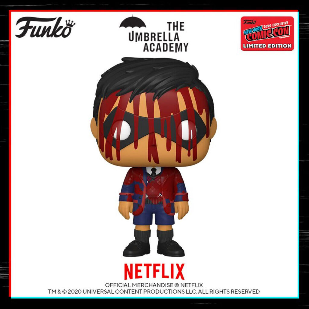 Coming exclusively to New York Comic Con 2020’s Virtual Con is a Funko Pop! of a bloody and victorious Number Six, Ben Hargreeves, from his golden years (though they be but few, it’s all been gravy).