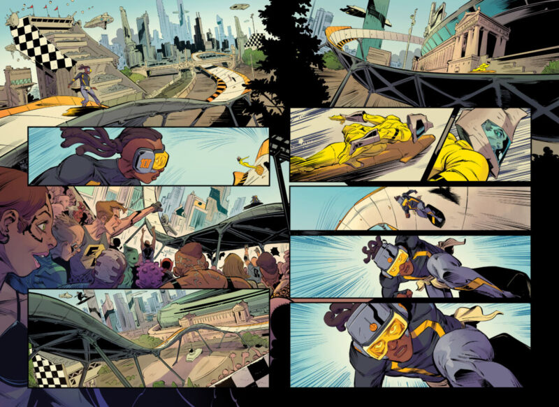 Created by former Chicago Bear and Pro Bowl linebacker Lance Briggs and Kyle Higgins (Ultraman, Nightwing) and illustrated by Danilo Beyruth, with colors by Tamra Bonvillain and lettering by Hassan Otsmane-Elaou, The Trap combines the world of sci-fi and sports to tell a story about race and economic inequality.