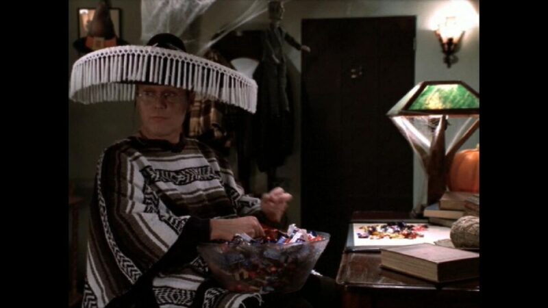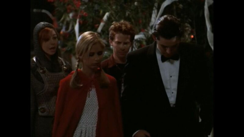 A show that has the words “vampire slayer” in the title, you would think that it be hard to have a specific episode dedicated to Halloween. Well, they actually have a few. In this one, they embrace and take a haunted house idea very literally and realistically. It starts with the fun activity of carving pumpkins in Xander’s (Nicholas Brendon) basement, talking about their Halloween plans, and going to the party on campus at the Alpha-Delta frat house. Buffy (Sarah Michelle Gellar) figures Giles (Anthony Stewart Head) would want her to patrol. She gets a surprise when showing up at his house. He opens the door, holding candy and wearing a sombrero. Giles even has decorations up. Everyone seems to be in the Halloween spirit but Buffy. She figures patrolling would be good so that they don’t get caught off guard remembering the Halloween they all got transformed into the costumes they wore. Being prepared this year, Buffy shows up with weapons in her basket since she is dressed up as Red Riding Hood.