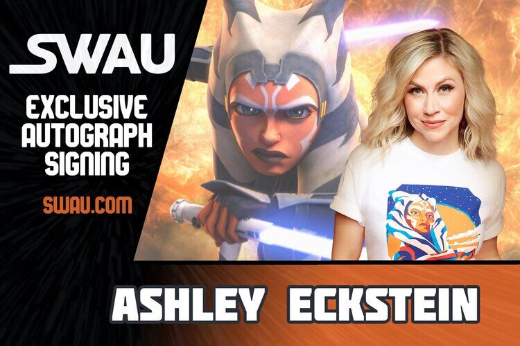 The next announcement is the voice of the beloved fan favorite Ahsoka Tano, Ashley Eckstein, who has appeared in Star Wars: The Clone Wars, Star Wars Rebels, Star Wars Forces of Destiny, and Star Wars: The Rise of Skywalker. She is also known for her fashion label Her Universe. Eckstein’s autograph is available starting at $110.