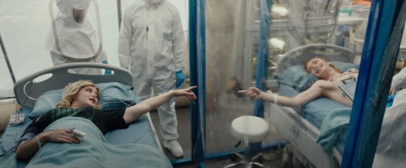 Our narrator Mara, played perfectly and boldly by Katherine Langford, is there to help guide us through it all. She’s got a lot on her plate, from the exploding teenagers in her town to her new romance with fellow disaffected and witty movie-lover Dylan (Charlie Plummer, who gets to show his funny side in a role lightyears away from his character in Looking For Alaska). Dylan is inspired to confess his long-gestating crush to Mara when he sees just how short life can be, and the romance they embark on is the best part of the film. The chemistry between Langford and Plummer makes for some great laughs and tender moments, with one E.T. tribute gag making me laugh out loud. As the two work through their bucket list dreams together (featuring copious amounts of underage drinking, and can you blame them?), you root for these crazy kids to make it through the whole bloody mess to the other side.