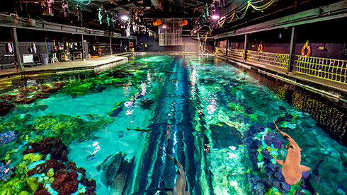 At Shark Encounter, experience what goes into taking care of sharks and sawfish. Visit the medical pool and learn how sharks get a physical, view of the moving walkway used to temporarily divide the exhibit for cleaning, learn how experts feed the sharks, get a viewpoint of the sharks exclusive to animal trainers and listen to the aquarists who take care of these amazing creatures. This location is not ADA accessible.