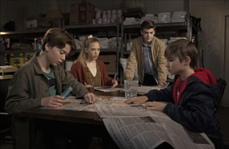 We flashback to when they are younger at the motel, and Travis tried to use the trick to get free candy from the machine. He walked away when it didn’t work, only to go back when he hears a chocolate bar fall. As Travis grabs for it, a very creepy hand grabs his wrist! We then see a young Dean calling Bobby to ask about his dad, then telling Sam that they will have to deal with it. Fans are then treated to when the brothers had to explain to people what they did. “The family business,” I have missed that. Caitlin and Travis take Dean and Sam to the fence with the images of the missing kids. They get a bunch of newspapers, and the four of them look up other missing kids. It made me think of them as a young Scooby-Doo group.