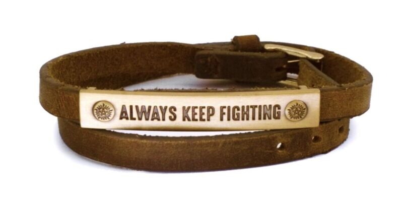 Next, we have the jewelry. There’s an assortment of charms, pins, and patches available in the holiday shop from a variety of campaigns. The charms include Julie McNiven’s Angel Radio charm, Sam Smith’s “Rise” Phoenix charm, Timothy Omundson’s “Unbroken” charm, and Jared Padalecki’s AKF charm. Enamel pins are also available, with a new “Real Queens” pin from Alaina and Hanna Huffman, a “Thanks Boys” pin, Padalecki’s “You Define You” pin, “Bitch, Jerk” pins, as well as Alexander Calvert’s “The End Has No End” pin. Finally, a season 15 patch, Padalecki’s “Always Keep Fighting” moose patch, and a necklace sporting Sam and Dean’s table carving initials on it are available.
