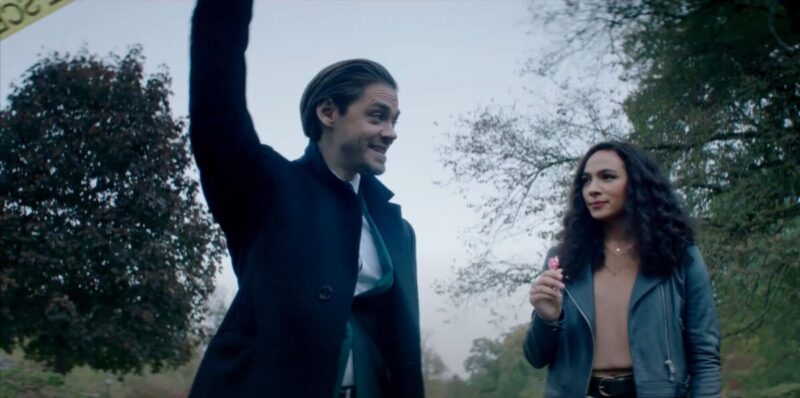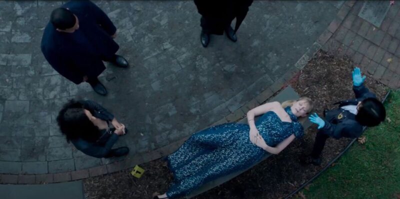 Malcolm holds police tape up for Dani to walk under. We’ll pause here to note the sucker Dani is holding, so maybe Malcolm is in gift-giving mode again at some point. If so, this means he also goes back to his psychologist (Yay for Malcolm taking care of his mental health!).