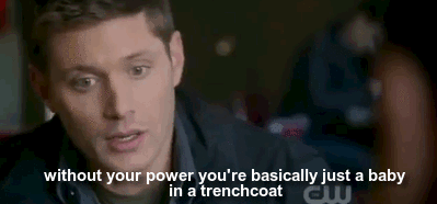 “Well, that’s great, ’cause without your power, you’re basically just a baby in a trench coat.” –Dean Winchester (Season 6, Episode 19)