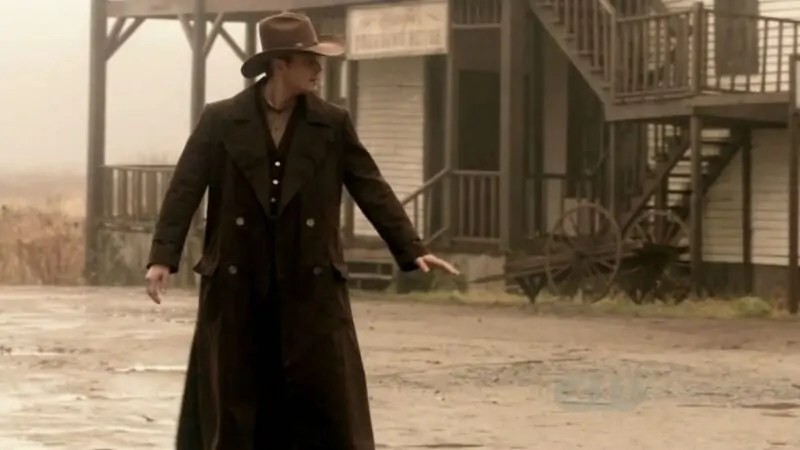 Dean shows up to the wild west dressed for… well according to the locals, not the wild west. They make fun of his serape and his too clean appearance from the second he arrives. However when things go south for the local sheriff, Dean inherits the title and receives an upgraded wild west Sheriff look that leads to a duel at high noon. It’s a little cheesy, sure, but we’ll take any excuse to watch Dean geek out over his love for all things western!