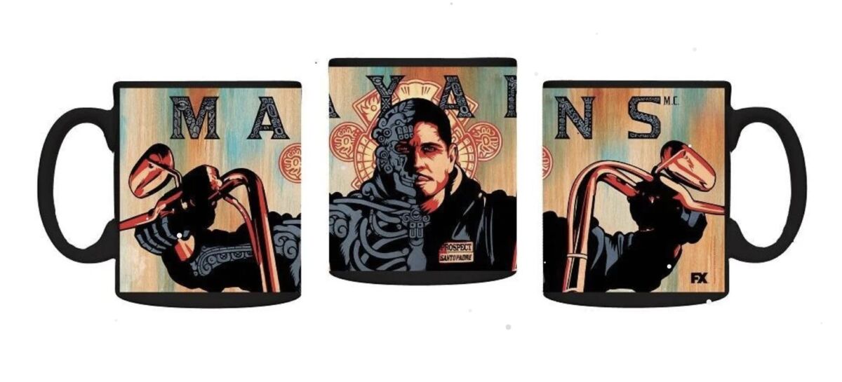 This official mug with the tribal art from season one features prospect EZ Reyes (JD Pardo) on his motorcycle with half his face and half Mayan skeleton face. This ceramic mug is excellent for curling up with a warm drink and re-watching seasons one and two of the show.