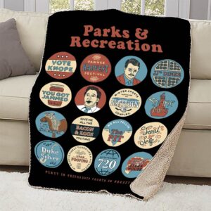 As we finally get into colder weather, there’s nothing cozier than curling up on the couch with a blanket and queuing up your favorite Parks and Rec episodes. What better way to get comfy than by wrapping up in this sherpa blanket from NBC that features some of the most iconic quotes from the show. The blanket is available in three different colors and can be purchased here.