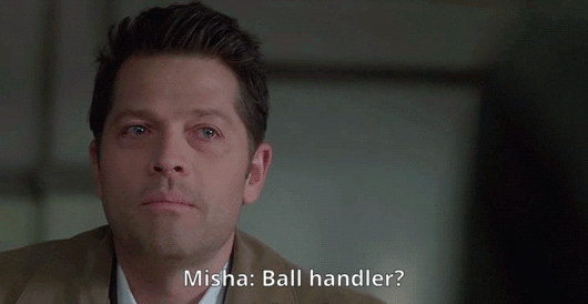 When Misha Collins joined the show back in season 4, he would not only change the course of the show but the blooper reels as well. Messing with Misha became a regular staple of the goofy outtakes we love so much, with many a scene spent trying to make the actor break character or laugh through pinching, prodding, poking, or out of frame shenanigans. Some of our favorite moments include: Misha getting frustrated at J2’s antics and throwing a paper airplane which crashes immediately, the well-known Colorado pronunciation debacle/ “He went to drama school?”, Jensen smacking Misha right in the ‘nads as he’s lying on the table as Cas’ corpse, Jared saying random things to make him laugh leading Misha to say “Jared’s not saying his lines right,” and of course, the infamous “ball handler” bit pictured above.