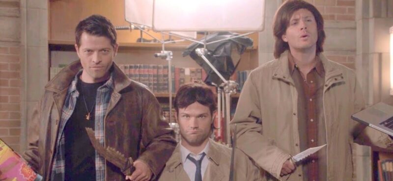 We constantly wonder how the show was able to get enough footage because of the cast’s constant and hilarious shenanigans. No complaints on this end because we get to experience a glimpse of the insanity that ensues on set. From dancing, laughing, slips and falls, and your run-of-the-mill fumbling of lines, we have some honorable mentions of our favorite general bloopers! One of the first that comes to our mind is Misha’s season 5 blooper saying, “Confetti, it’s a parade!” because it’s a fan favorite and one of the most quotable bloopers in the 15 years of the show. Some other notable bloopers include Jensen, Misha, and Jared dancing in the field and Misha’s wormstache in season 6, Jensen falling after his powerful Braveheart speech in season 8, Jared and Jensen riding the mini bikes in season 5, Misha flattening himself on the ground to get out of the shot in season 8, Jared saying that he’s “Sam bleeping Winchester” in several seasons, J2M getting into the Christmas spirit with their ugly Christmas sweaters in season 10, and more!