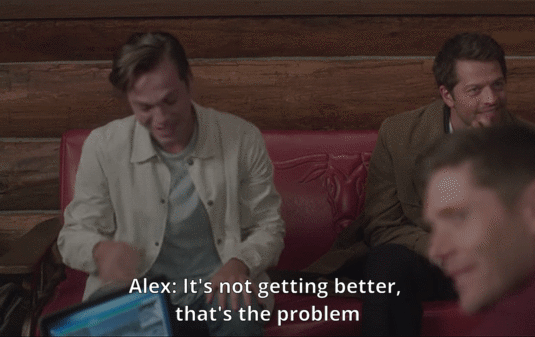 However, one of the most notable bloopers has to be in season 13 when Alexander Calvert joins the group. Close to the beginning of the season, Jensen and Jared are constantly messing up lines on purpose (“Looks like Baby Driver” and “Looks like Minnie Driver”), making it hard for Alex to concentrate and causing him to break. He tells Misha it’s getting worse and not better, which causes Misha to place his hand on Alex’s shoulder and tell it to him straight: “Hey, it never gets better.”