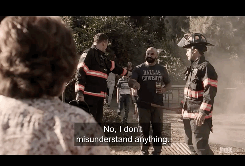 In the second episode of the season, the 126 take a call involving a family starting a fire in their yard. The said fire was actually barbacoa, steak that you grill in the ground. The previous week, the neighbor, Ellen, had made a call about her neighbors waving around bats, but it was really just a 10-year-old’s birthday party that had a piñata. Hector, her neighbor, says she may look like a sweet, old lady but she’s really an evil racist. The “old” part is what really gets to Ellen, soon correcting herself that she’s not a racist. Owen tells her he will be making a citizen’s arrest … on her, it’s illegal to make nuisance 9-1-1 calls. Just as they’re about to arrest her, Ellen starts acting like she’s having a heart attack. Marjan goes in to do mouth-to-mouth but Ellen says no. She asks Owen if he can do it and he tells her he’s not certified. She points to T.K. and his response is simply, “Sure, ma’am. But just so you know I am a homosexual.” Ellen asks Judd, who straight up says no. She tells Paul he can do it, indicating she’s not racist. She asks him if he’s homosexual and he says no. But he is trans though. Ellen gives in and tells Owen to cuff her. It’s one of the more hilarious moments from the season and also shows just how diverse the 126 is.