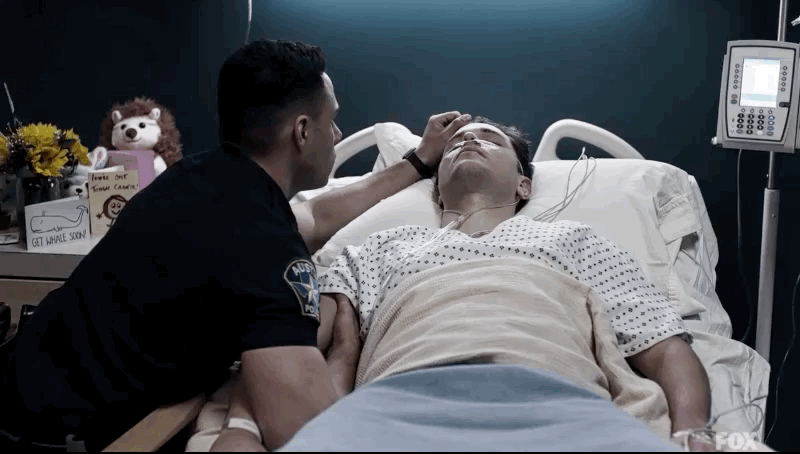 When a little boy accidentally shot T.K. during a call, it was only a matter of time before Carlos visited him. As T.K. is lying in his hospital bed, in a coma, Owen is sitting by his side, talking to him. However, Carlos is standing next to the doorway, not wanting to impose, but Owen offers him to come in. He thinks T.K. would appreciate it. He knows he would. Owen leaves Carlos alone with his son, and Carlos takes a seat, teary-eyed. He takes T.K.’s hand and starts stroking his arm and hair until the 126 come in to offer their support. It’s a heartbreaking but beautiful moment that really captures just how much T.K. means to Carlos, even in the short amount of time they’ve known each other.