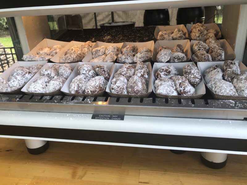 Although we were full and couldn’t try this delicacy, we can tell you that everyone was lining up to eat these tasty, powdered pastries of goodness! Not only that, but if you’re feeling adventurous, you can inject (yes, you heard us right) Rum Glazed Bananas Foster or Bourbon Caramel into your beignet!