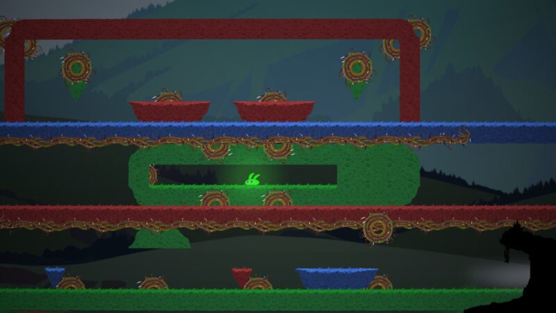 In gameplay, players will need to complete several challenging levels to save their family, avoid hazards and deadly falls to progress through the game, and even have the ability to change colors to land safely on landing platforms without being spotted.