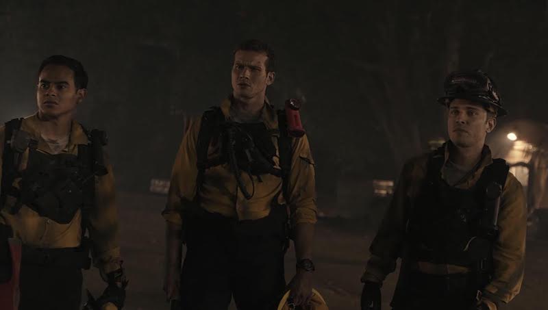 Once up in the air, Owen asks Judd over radio what his 20 is. Judd says they’re a few klicks west of the camp, they haven’t found the kid. They found the tent but no remains so they think he went deeper into the woods trying to get away from the fire. Looking for heat signatures, Hen thinks she found something, movement under a grove of trees. Owen tells Judd, he’s going to try to get over on top of it. Judd and Paul start driving in JJ’s direction and calling out his name, and soon, JJ calls back, screaming for help. Judd and Paul take care of JJ but the winds get worse and the helicopter starts going down. “Mayday. Mayday. We are going down.” The helicopter crashes among the wildfire-filled mountainside.